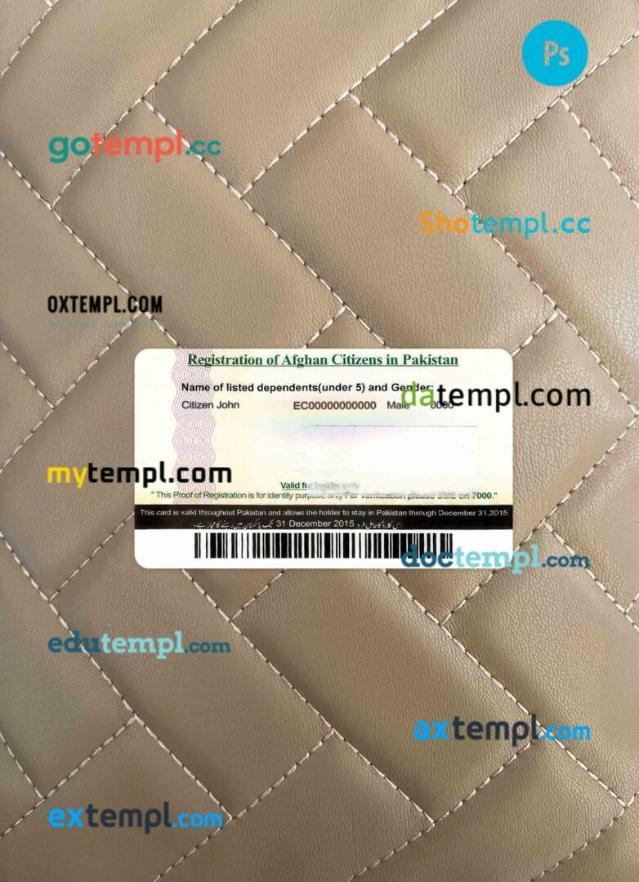 Afghanistan Citizen proof registration card editable PSD files, scan look and photo-realistic look, 2 in 1