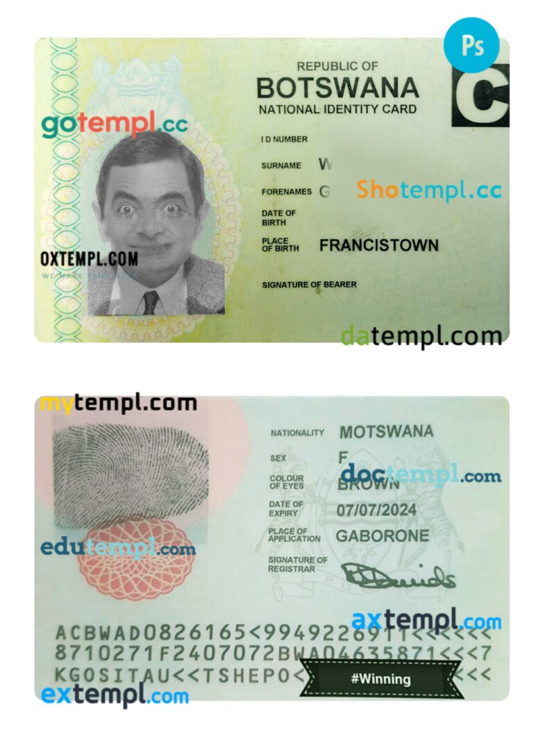 Botswana identity card editable template.