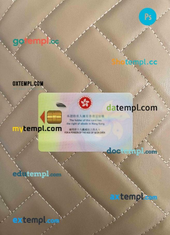 Our Hong Kong identity card template offers two options in one package: editable PSD files for both photo and scan looks. Compatible with Adobe Photoshop, this template is fully customizable, requiring only basic editing knowledge to personalize.