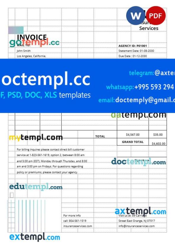 Fully editable Insurance Agency Invoice template – individual design.