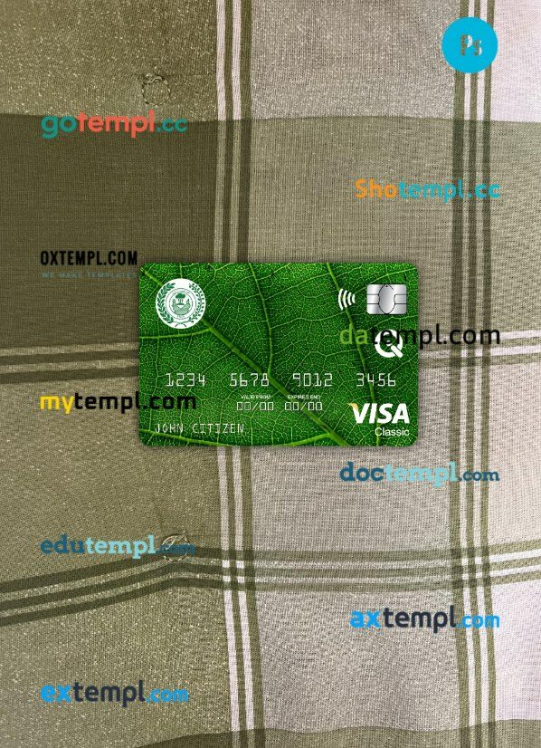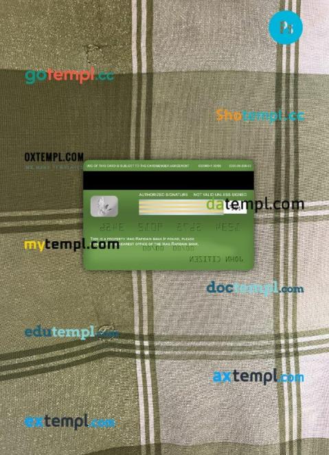Iraq Rafidain Bank visa debit card PSD scan and photo-realistic snapshot, 2 in 1