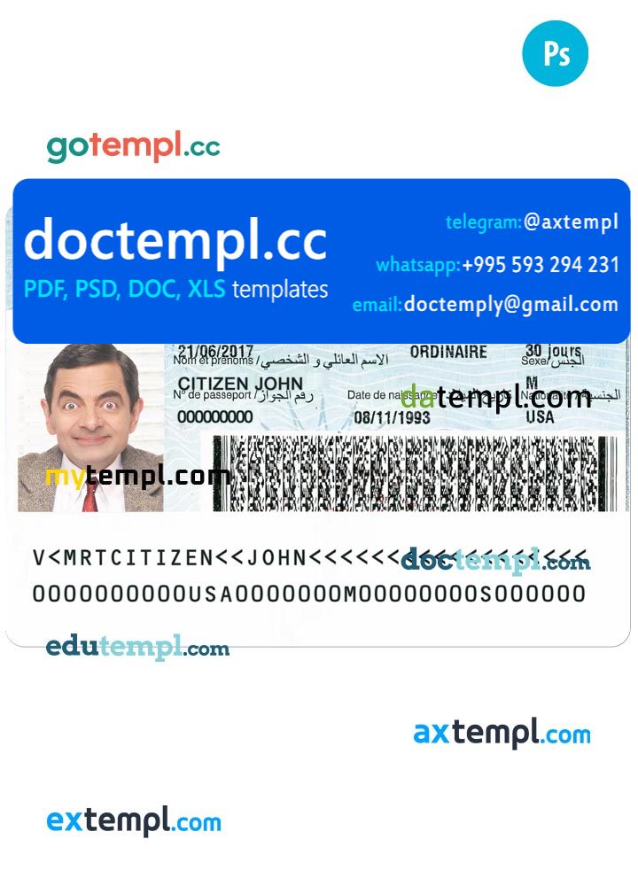 MAURITANIE visa template in PSD format, version 2