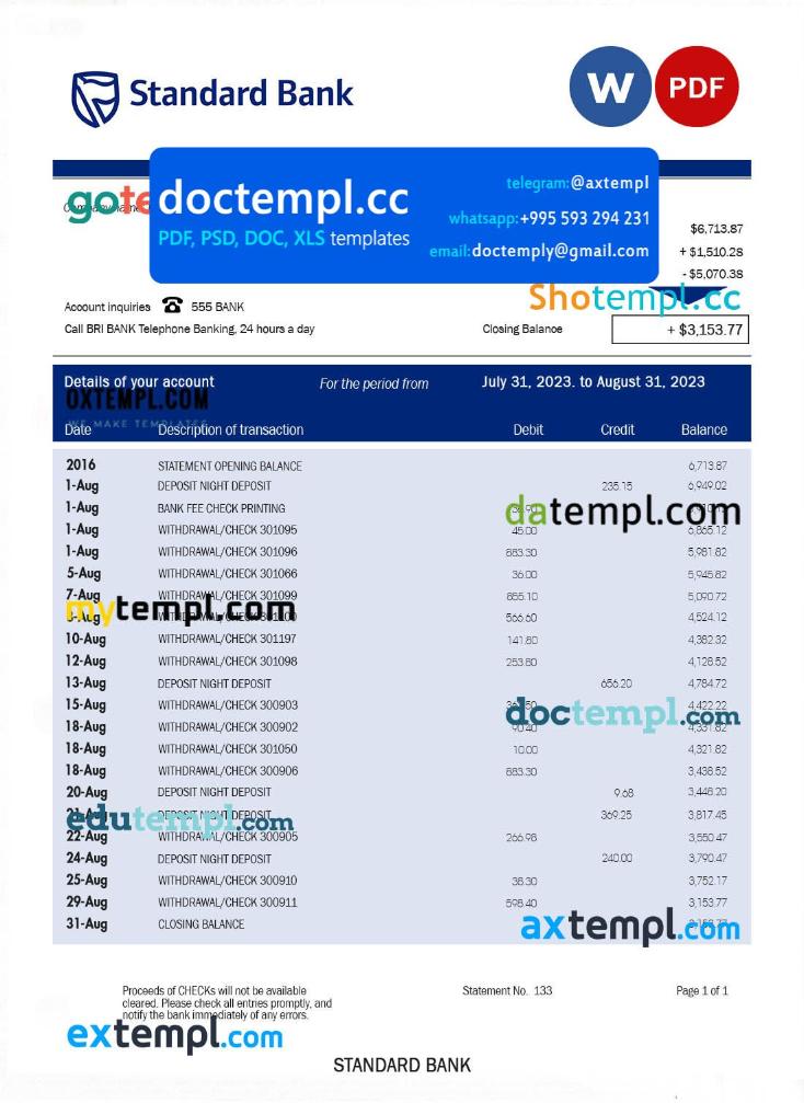 Fully editable bank organization statement template – to fill out your detailed information and business finances easily.