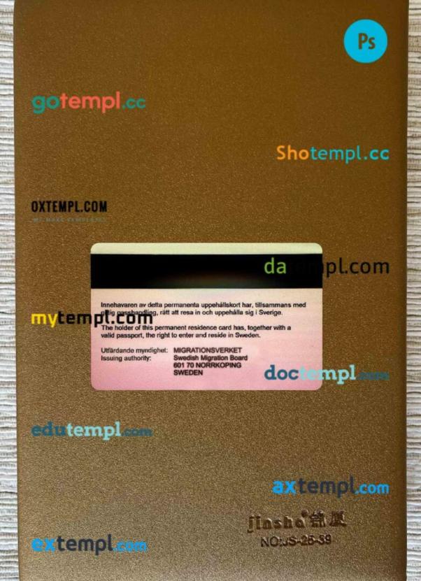 Our Swedish permanent residence card template offers two options in one package: editable PSD files for both photo and scan looks.