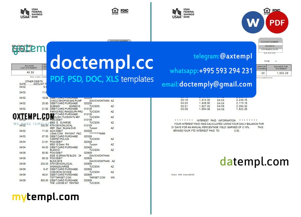 Fully editable template of USA Texas First Citizens bank statement. The template is in .doc and .pdf format, high-quality and easy to fill.